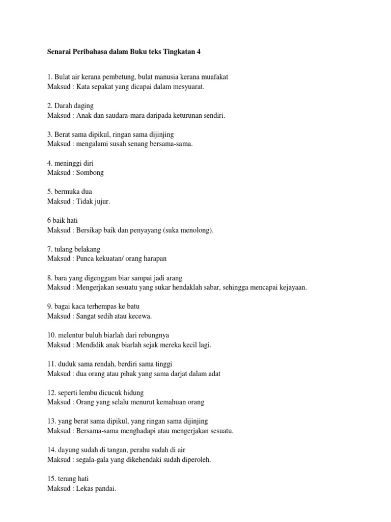 Senarai Peribahasa Dalam Buku Teks Tingkatan 4 Pdf